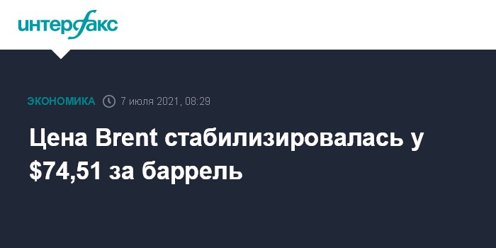 К 8 утра по московскому времени сентябрьские фьючерсы на Brent торговлаись на лондонской бирже ICE Futures на уровне $74,51 за баррель, что на $0,02 (0,03%) ниже цены на закрытие предыдущей сессии. За вторник Brent подешевела на $2,63 (3,4%), до $74,53 за баррель, после достижения сессионного максимума на уровне $77,84 за баррель - самой высокой отметки с октября 2018 года.