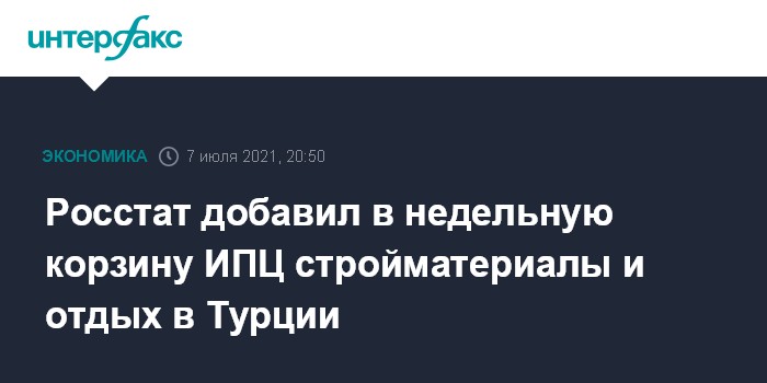 Росстат добавил в недельную корзину ИПЦ стройматериалы и отдых в Турции