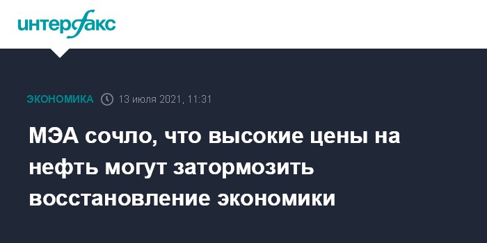 Москва. 13 июля. INTERFAX.RU - Текущие высокие цены на нефть могут помочь ускорить энергопереход, но также затормозить восстановление, особенно в странах с зарождающейся и развивающейся экономикой, пишут аналитики Международного энергетического агентства (МЭА) в своем ежемесячном отчете.