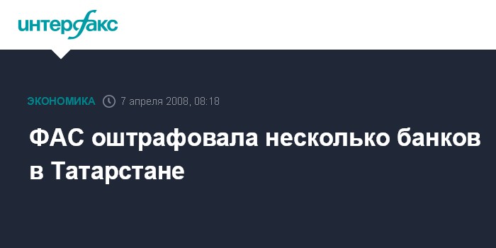 Казань. 7 апреля. INTERFAX.RU - Управление федеральной антимонопольной службы (УФАС) по Татарстану оштрафовало Национальный банк "Траст" на 600 тыс. рублей, УРСА банк, Кредит Европа банк, банки ВТБ 24 и "Зенит" - на 150 тыс. рублей каждый, говорится в сообщении пресс-службы ведомства.