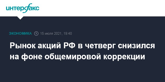 Рынок акций РФ в четверг снизился на фоне общемировой коррекции