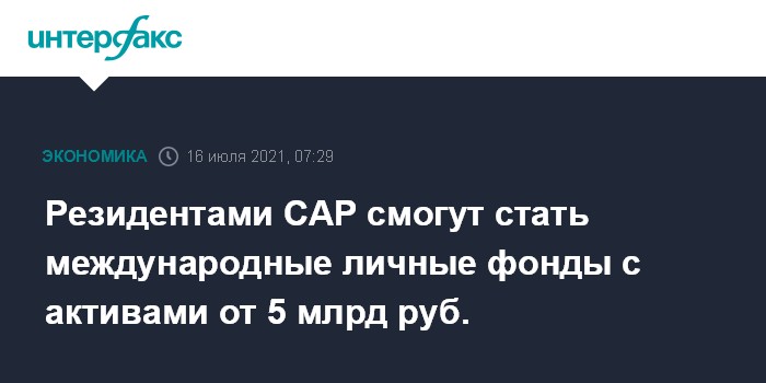 Резидентами САР смогут стать международные личные фонды с активами от 5 млрд руб.