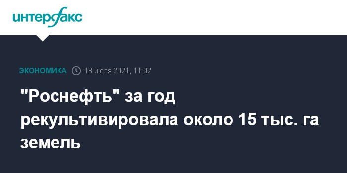 Москва. 18 июля. INTERFAX.RU - Дочерние предприятия "Роснефти" в 2020 году рекультивировали около 15 тысяч гектар земель, сообщает пресс-служба компании.