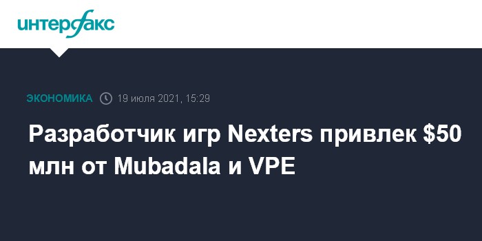 Москва. 19 июля. INTERFAX.RU - Объем инвестиций в разработчика игр Nexters составил $100 млн, из них $50 млн были привлечены в рамках частного размещения от суверенного арабского фонда Mubadala и фонда VPE Capital, говорится в сообщении компании.