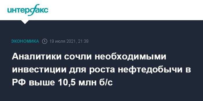 Москва. 19 июля. INTERFAX.RU - Россия может без труда увеличить добычу нефти до 10-10,5 млн баррелей в сутки, дальнейшее наращивание потребует инвестиций, полагают аналитики, большинство из которых не поменяло своего прогноза цен на "черное золото" после решения ОПЕК+ об ускоренном наращивании добычи.