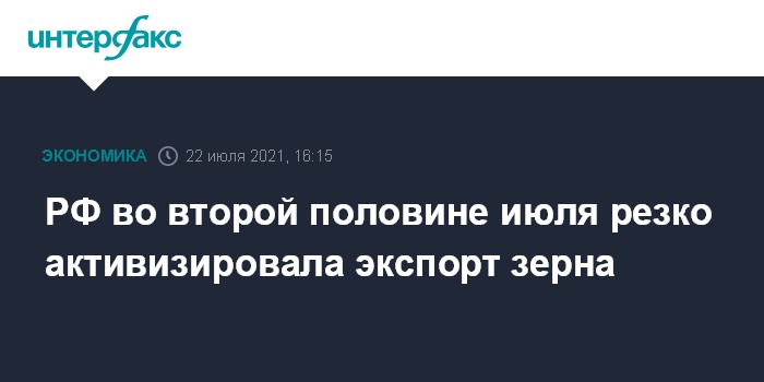 Москва. 22 июля. INTERFAX.RU - Россия во второй половине июля резко активизировала экспорт зерна, рентабельность поставок растет. Это следует из мониторинга аналитического департамента Российского зернового союза.