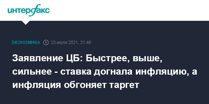 Заявление ЦБ: Быстрее, выше, сильнее - ставка догнала инфляцию, а инфляция обгоняет таргет