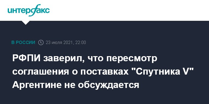 22 июля аргентинская газета La Naсion сообщила о письме советника президента Аргентины Сесилии Никколини первому заместителю гендиректора РФПИ Анатолию Браверману о критической ситуации с поставками вакцины в страну и об угрозе разрыва контракта. Никколини сообщала об отсутствии поставок второй дозы "Спутника V" и признавалась, что выбор препарата имел геополитические причины.