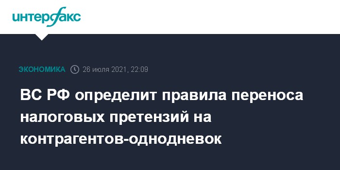 ВС РФ определит правила переноса налоговых претензий на контрагентов-однодневок