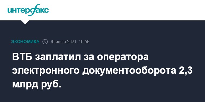 ВТБ заплатил за оператора электронного документооборота 2,3 млрд руб.