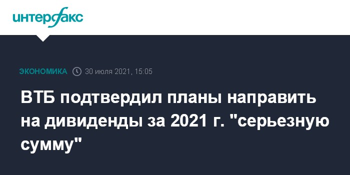 ВТБ подтвердил планы направить на дивиденды за 2021 г. "серьезную сумму"