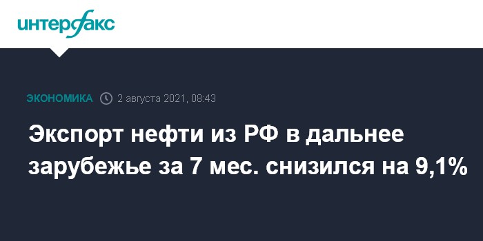 Экспорт нефти из РФ в дальнее зарубежье за 7 мес. снизился на 9,1%