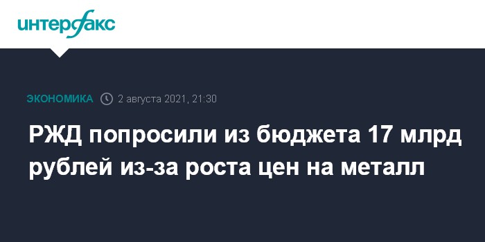 О том, что РЖД в связи с ростом цен на металл и введением экспортных пошлин запросили господдержку на 17 млрд рублей, сообщает в понедельник и РБК.