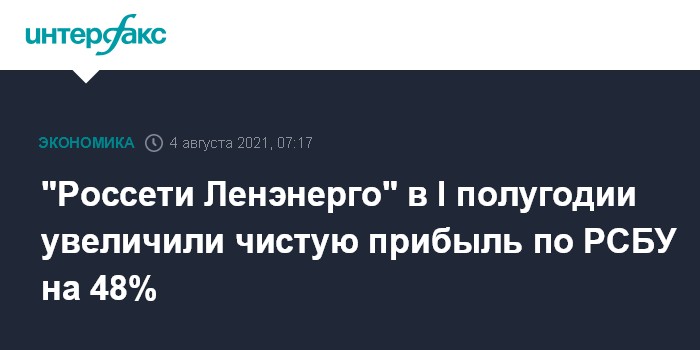 Москва. 4 августа. INTERFAX.RU - ПАО "Россети Ленэнерго" в январе-июне 2021 года увеличило чистую прибыль по РСБУ на 48,1% по сравнению с аналогичным периодом 2020 года - до 11 млрд 269,279 млн рублей, следует из отчета компании.
