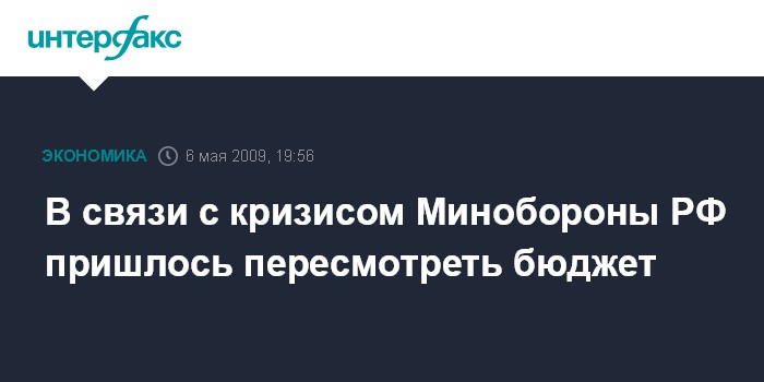 Москва. 6 мая. INTERFAX.RU - Минобороны пришлось пересмотреть оборонный бюджет в связи с мировым экономическим кризисом, заявил министр обороны РФ Анатолий Сердюков.