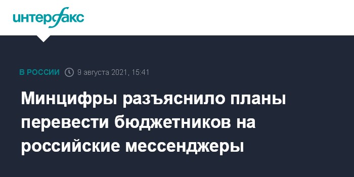 "Коммерсантъ" 9 августа сообщил, ссылаясь на план госпрограммы "Создание дополнительных условий для развития отрасли информационных технологий", что "правительство планирует принудительный перевод всех госслужащих и бюджетников на российские мессенджеры, почту и сервисы видео-конференц-связи". В 2022 году это требование рассчитывают ввести для преподавателей школ и вузов, которые смогут общаться с родителями, школьниками и студентами только через российские IT-сервисы.