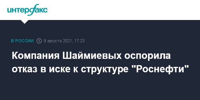Компания Шаймиевых оспорила отказ в иске к структуре "Роснефти"