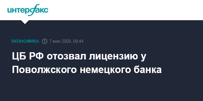 ЦБ РФ отозвал лицензию у Поволжского немецкого банка
