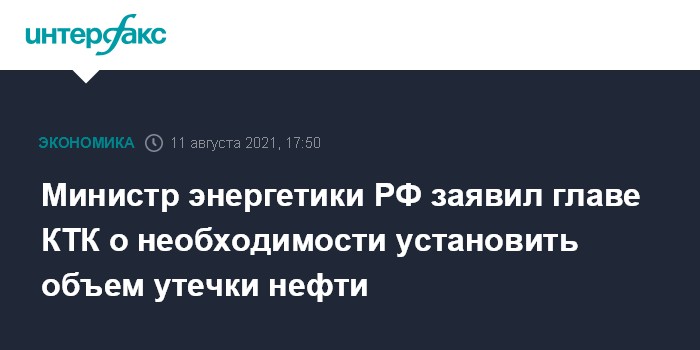 Министр энергетики РФ заявил главе КТК о необходимости установить объем утечки нефти