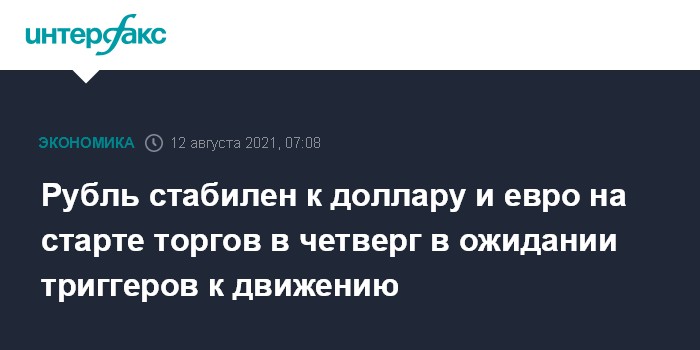 По мнению экспертов "Интерфакс-ЦЭА", незначительные изменения курса рубля к доллару и евро на старте торгов 12 августа обусловлены отсутствием новых стимулов к движению. Цены на нефть эталонных марок в четверг утром демонстрируют незначительную динамику. Также инвесторы сократили активность на глобальных рынках после ее всплеска накануне вечером на фоне выхода данных по потребительской инфляции в США.