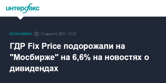 Москва. 12 августа. INTERFAX.RU - Глобальные депозитарные расписки ритейлера Fix Price подорожали в начале торгов четверга на "Московской бирже" на 6,6% (до 615 рублей за штуку) на новостях о дивидендах и публикации отчета за I полугодие.