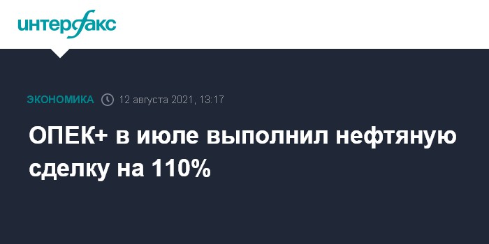 ОПЕК+ в июле выполнил нефтяную сделку на 110%