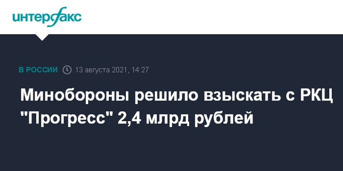 Минобороны решило взыскать с РКЦ "Прогресс" 2,4 млрд рублей