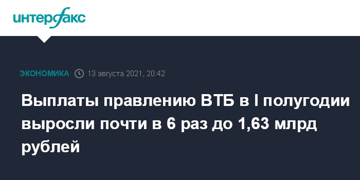 Москва. 13 августа. INTERFAX.RU - Выплаты правлению ВТБ, включающие премию и заработную плату, в первом полугодии выросли в 5,8 раза по сравнению с аналогичным периодом прошлого года, составив 1,625 млрд рублей. Об этом свидетельствует ежеквартальный отчет банка по ценным бумагам.
