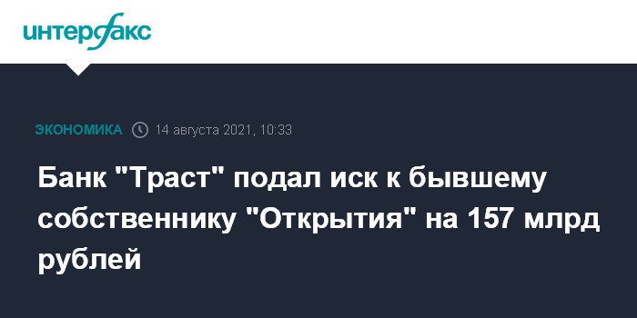 Банк "Траст" подал иск к бывшему собственнику "Открытия" на 157 млрд рублей