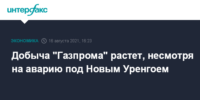 Добыча природного газа "Газпрома" в августе показывает рост на 1,2% по отношению к июлю, несмотря на пожар под Новым Уренгоем, следует из данных концерна.