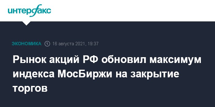 Рынок акций РФ обновил максимум индекса МосБиржи на закрытие торгов