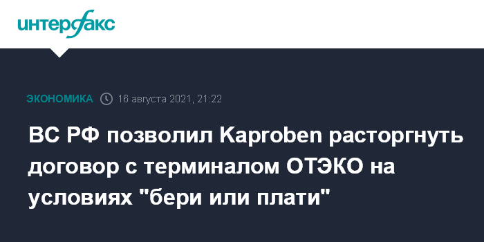 ВС РФ позволил Kaproben расторгнуть договор с терминалом ОТЭКО на условиях "бери или плати"