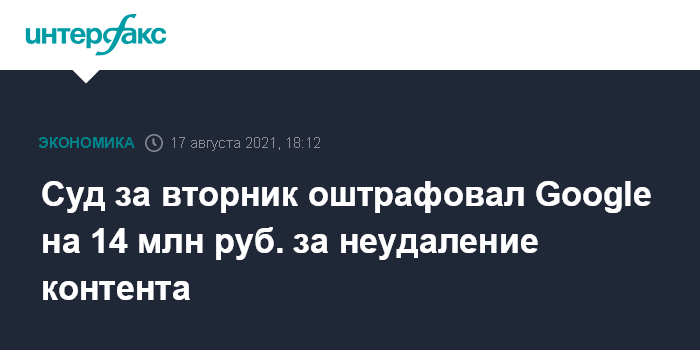 Суд за вторник оштрафовал Google на 14 млн руб. за неудаление контента