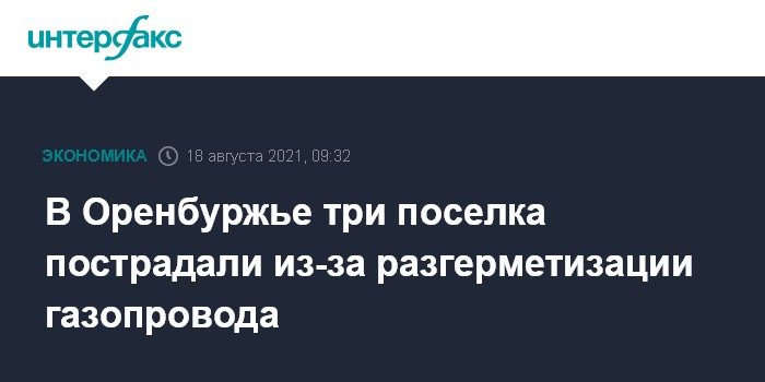 Газопровод разгерметизировлася 17 августа в 23:00 (21:00 по Москве), уточнили в Минприроды Оренбургской области. Там добавили, что спецлаборатория ГБУ "Экологическая служба Оренбургской области" уже через 40 минут была на месте происшествия для проверки воздуха. Пробы взяли в поселках Бердянка, Паника и Чкалов Оренбургского района.