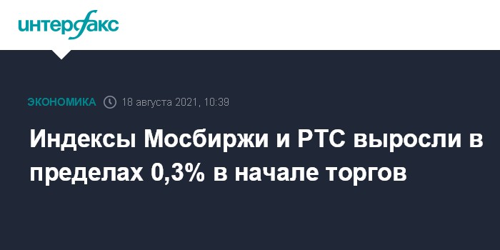 Индексы Мосбиржи и РТС выросли в пределах 0,3% в начале торгов