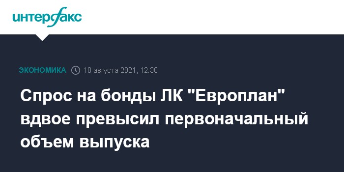 Спрос на бонды ЛК "Европлан" вдвое превысил первоначальный объем выпуска