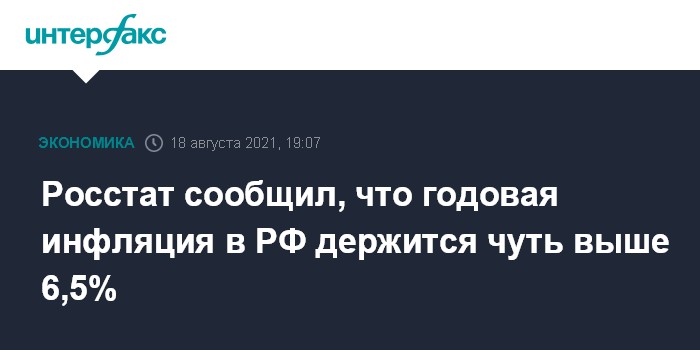 Из данных Росстата следует, что годовая инфляция в РФ на 16 августа немного ускорилась до 6,52% с 6,51% на 9 августа и 6,46% на конец июля. Таким образом, последние две недели годовая инфляция возобновила незначительный рост - до этого она снижалась на протяжении четырех недель подряд - с пиковых 6,6% на 5 июля.