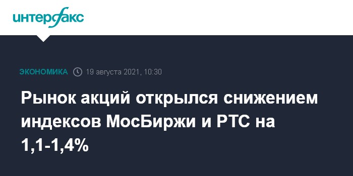 Рынок акций открылся снижением индексов МосБиржи и РТС на 1,1-1,4%