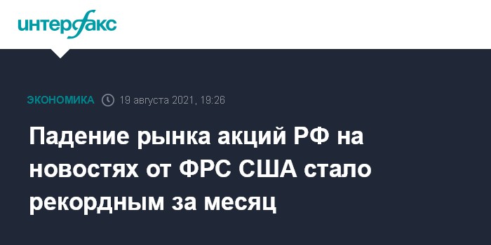 Падение рынка акций РФ на новостях от ФРС США стало рекордным за месяц