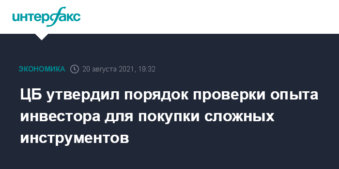 ЦБ утвердил порядок проверки опыта инвестора для покупки сложных инструментов
