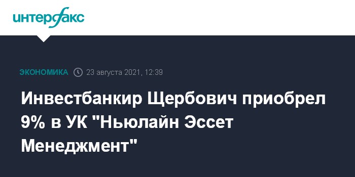 Инвестбанкир Щербович приобрел 9% в УК "Ньюлайн Эссет Менеджмент"