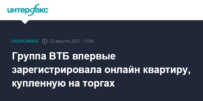 Группа ВТБ впервые зарегистрировала онлайн квартиру, купленную на торгах