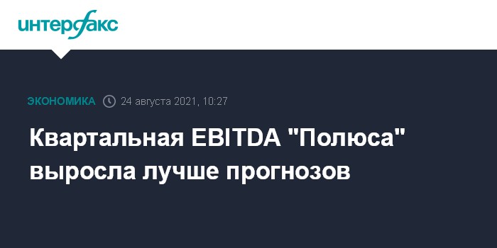 Москва. 24 августа. INTERFAX.RU - Во II квартале 2021 года скорректированная EBITDA золотодобывающей компании "Полюс" выросла на 5% по сравнению с аналогичным периодом прошлого года и составила $899 млн, сообщила компания.