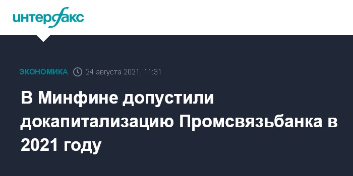 Москва. 24 августа. INTERFAX.RU - Промсвязьбанк может быть докапитализирован за счет бюджетных средств в этом году, объем выделяемых средств обсуждается. Об этом заявил замминистра финансов РФ Алексей Моисеев в ходе панельной дискуссии на форуме "Армия-2021".