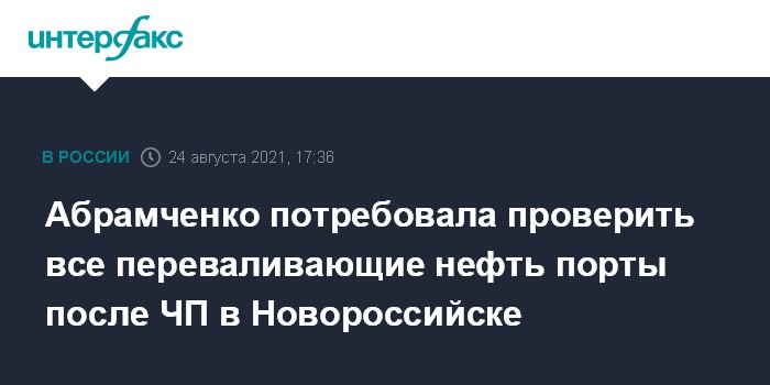 "Да, я запустила проверку по всем портам, где идет перевалка опасных грузов, в том числе нефти. Она должна быть проведена в течение месяца", - сообщила журналистам вице-премьер РФ Виктория Абрамченко, отвечая на вопрос "Интерфакса".