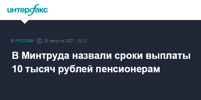 Москва. 26 августа. INTERFAX.RU - Единовременную выплату в 10 тысяч рублей в соответствии с недавним указом президента до конца следующей недели (8 сентября) получат 30,7 млн пенсионеров, у которых есть банковская карта, сообщил министр труда Антон Котяков.