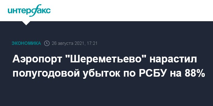 Москва. 26 августа. INTERFAX.RU - В I полугодии 2021 года АО "Международный аэропорт "Шереметьево" (МАШ) нарастило чистый убыток по РСБУ на 88% в годовом измерении, до до 2,2 млрд рублей, говорится в отчете компании. сообщении компании.