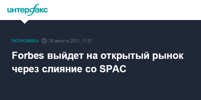Москва. 26 августа. INTERFAX.RU - Forbes Global Media Holdings Inc выйдет на открытый рынок через слияние c Magnum Opus Acquisition Ltd., специализированной компанией по слияниям и поглощениям (SPAC).