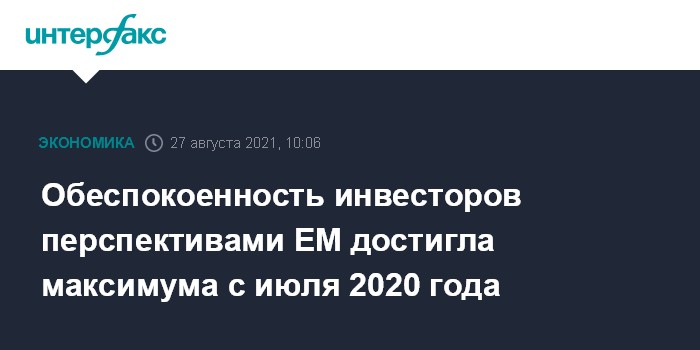 Москва. 27 августа. INTERFAX.RU - Инвесторы максимально с июля 2020 года обеспокоены перспективами развивающихся рынков (EM), говорится в обзоре главного стратега BCS Global Markets (BCS GM) Вячеслава Смольянинова.