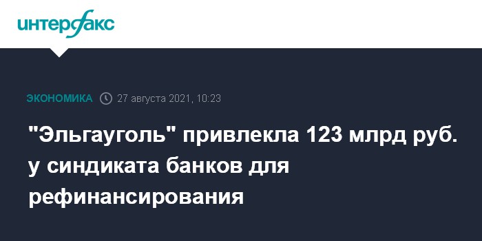 Москва. 27 августа. INTERFAX.RU - Компания "Эльгауголь" (оператор Эльгинского месторождения коксующегося угля, входит в "А-Проперти" Альберта Авдоляна) привлекла 123 млрд рублей у синдиката банков во главе с Газпромбанком под залог экспортной выручки.